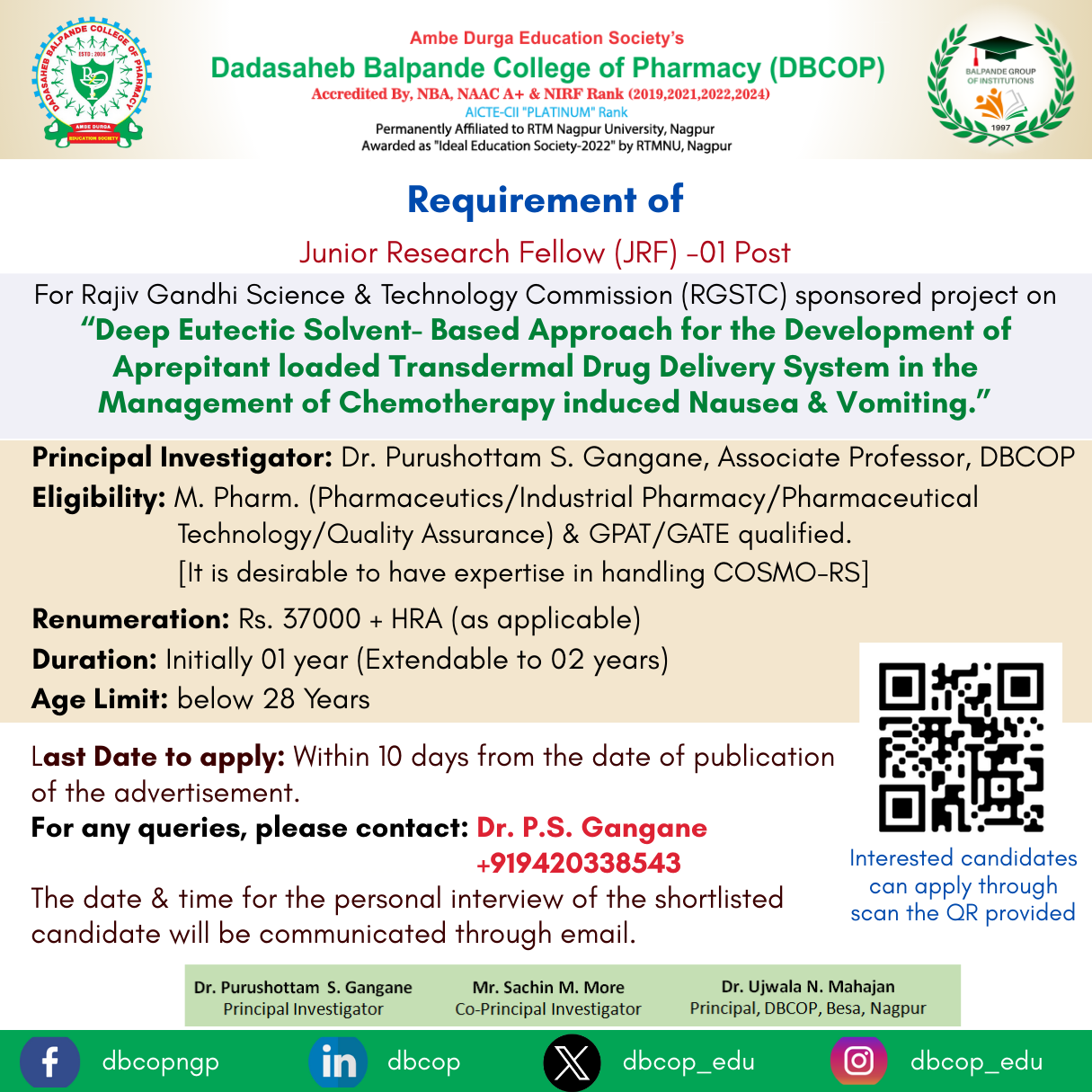 Requirement of Junior Research Fellow (JRF) -01 Post For Rajiv Gandhi Science & Technology Commission (RGSTC) Sep, 4 2025 View Details